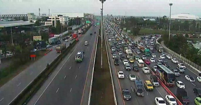 กรุงเทพฯ 29 ธ.ค.-fm91trafficpro และ TRS995radio รายงานการจราจรเช้าวันศุกร์ ออกนอกเมือง ถ.พหลโยธิน-ถ.มิตรภาพ ปริมาณรถมาก แน่นทุกช่องทาง ถนนพหลโยธิน ขาออก จากต่างระดับบางปะอิน ไปวังน้อย แน่นทุกช่องทาง ทล.พระนครศรีอยุธยา กำลังพิจารณาเปิดช่องพิเศษ จาก กม.58 ไป กม.74 ทางหลวงหมายเลข9 (บางปะอิน-บางพลี) รถติดสะสมยาว เนื่องจาก ถนนพหลโยธินทั้งฝั่งมุ่งหน้าบางปะอิน และสระบุรีมีปริมาณรถมาก เป็นเหตุทำให้รถจากมอเตอร์เวย์ ทางหลวงหมายเลข9 ไม่สามารถระบายรถออก ถ.พหลโยธินได้เท่าที่ควรเวลานี้ท้ายแถวอยู่ที่ กม.7 ถนนมิตรภาพ ขาออก ช่วง เขื่อนลำตะคอง ไปอ.สีคิ้ว จ.นครราชสีมา ปริมาณรถมาก การจราจรเคลื่อนตัวช้า ถนนกำแพงเพชร 2 หน้าขนส่งหมอชิต2 การจราจรหนาแน่น มีรถรอเข้า-ออกจำนวนมาก ขอให้ผู้โดยสารเผื่อเวลาในการเดินทาง ภายในสถานีขนส่งฯ มีประชาชนรอเดินทาง ประมาณ 2,000 คน.-สำนักข่าวไทย