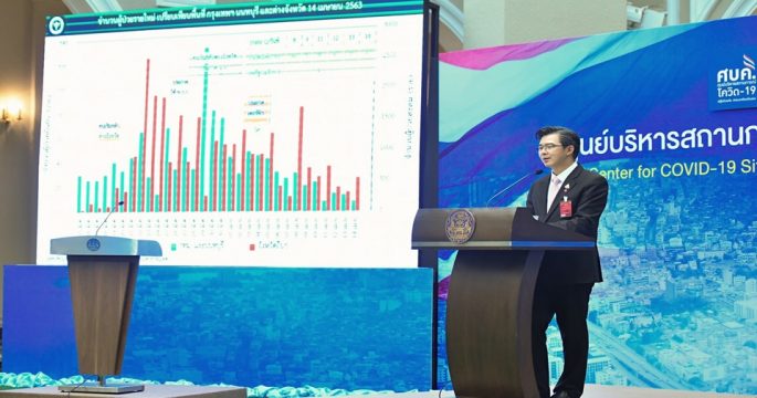 ทำเนียบรัฐบาล 14 เม.ย.-โฆษกศบค. เผยตัวเลขผู้ติดเชื้อโควิดใหม่ 34 ราย เสียชีวิตเพิ่ม 1 ราย ขอทุกคนคงความเข้มดูแลตัวเอง เชื่อตัวเลขติดเชื้อลดลงแน่นอน ยืนยันจำนวนเตียงและเครื่องช่วยหายใจมีพอ ขณะที่ WHO ชื่นชมไทยมีระบบดูแลสุขภาพทั่วถึง นพ.ทวีศิลป์ วิษณุโยธิน โฆษกศูนย์บริหารสถานการณ์การแพร่ระบาดของโรคติดเชื้อไวรัสโคโรนา 2019 (โควิด-19) หรือศบค. แถลงสถานการณ์โควิด-19 ว่า วันนี้ (14 เม.ย.) มีรายงานผู้ป่วยใหม่ 34 ราย รวมผู้ป่วยสะสมเพิ่มขึ้นเป็น 2,613 ราย รักษาหาย 1,405 ราย เสียชีวิตเพิ่ม 1 ราย รวม 41 ราย โดยผู้เสียชีวิตรายล่าสุดเป็น หญิง ชาวไทย อายุ 52 ปี อาชีพพนักงานขับรถขสมก. สาย 140 มีโรคประจำตัวความดันโลหิตสูง โรคหัวใจโต มีประวัติสังสรรค์ดื่มสุรากับกลุ่มเพื่อน โดย 1 […]