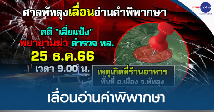 ศาลจังหวัดพัทลุง เลื่อนอ่านคำพิพากษา “แป้ง นาโหนด” คดีพยายามฆ่าตำรวจทางหลวง ไปเป็นวันที่ 25 ธ.ค.66 และออกหมายจับคดีเกี่ยวกับอาวุธปืนเพิ่มอีก 1 หมายจับ