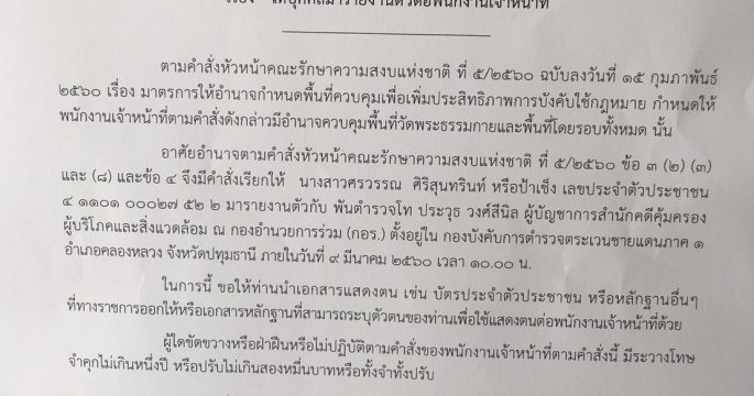 ดีเอสไอออกหมายเรียกให้ป้าเช็ง นำเอกสารเข้ารายงานตัวที่กองบังคับการตำรวจตำรวจตระเวนชายแดน ภูธรภาค 1 วันที่ 9 มีนาคมนี้ เวลา 10.00 น.