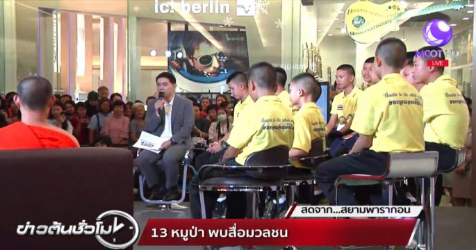 นิทรรศการ “ปฏิบัติการถ้ำหลวง วาระแห่งโลก” ที่จัดขึ้นกลางห้างดัง วันนี้ดูจะคึกคักกว่าวันอื่นๆ เพราะนอกจากคนที่มาชมนิทรรศการแล้ว หลายคนยังมาเพื่อเฝ้ารอติดตามการเปิดใจของ 13 ชีวิตทีมหมูป่าอะคาเดมี อย่างใจจดจ่อ