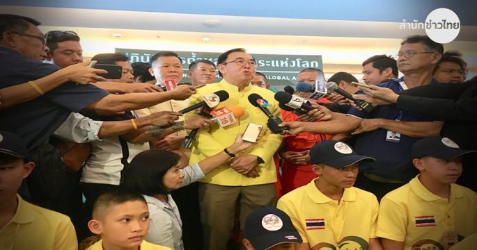 นักฟุตบอลเยาวชนทีมหมูป่าอะคาเดมี 12 คน พร้อมด้วยพระโค้ชเอก “เอกพล จันทะวงษ์” และพ่อแม่ผู้ปกครอง รวม 47 คน เดินทางถึง กทม. เพื่อร่วมงาน “รวมใจเป็นหนึ่งเดียว”