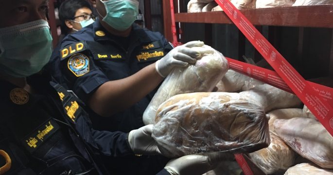 กรมปศุสัตว์ ร่วมกับตำรวจและทหารจับกุมพ่อค้าลักลอบนำซากหมูเล็กแช่แข็ง (หมูกี้) ไม่มีแหล่งที่มา 366 ตัวเข้าไทย