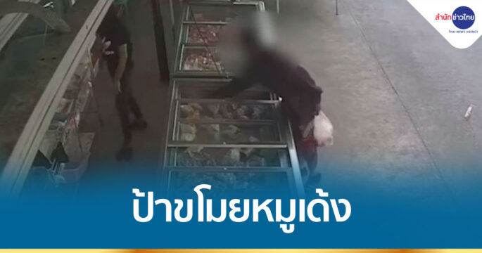 เจ้าของร้านขายหมูเมืองเพชรบูรณ์ โพสต์ภาพจากวงจรปิด ป้าขโมยหมูเด้ง ใส่ในถุงหิ้ว ตีเนียนจ่ายเพียงถุงเดียว
