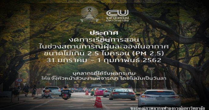 จุฬาฯ ออกประกาศงดการเรียนการสอนและทำงาน ในช่วงวันที่ 31 ม.ค.-1 ก.พ.62 โดยไม่ถือเป็นวันลาและขาดงาน