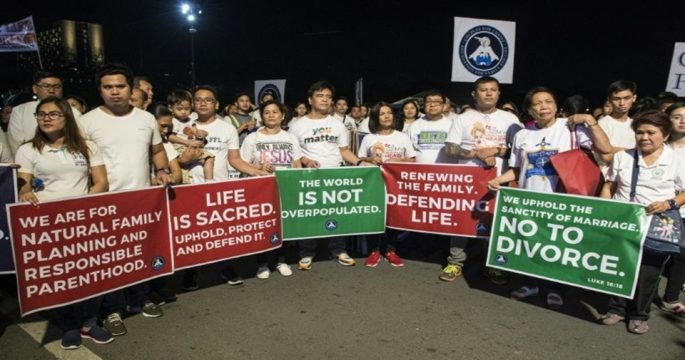 ชาวคริสต์คาทอลิกราว 2,000 คนชุมนุมในกรุงมะนิลาของฟิลิปปินส์ตั้งแต่เช้ามืดวันนี้ คัดค้านการผ่านร่างกฎหมายให้การหย่าเป็นสิ่งถูกกฎหมาย