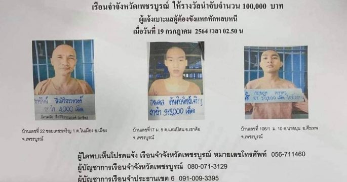 กรมราชทัณฑ์ 19 ก.ค.-ผู้ต้องขังชาย 4 คน เรือนจำเพชรบูรณ์ก่อเหตุหลบหนี จับกุมได้แล้ว 1 คน อีก 3 คนสนธิกำลังเจ้าหน้าที่ติดตาม เมื่อเวลา 12.00 น.วันนี้(19 ก.ค.) กรมราชทัณฑ์ ได้รับรายงานจากนางละออง อยู่ยั่งยืน ผู้บัญชาการเรือนจำจังหวัดเพชรบูรณ์ ว่า เมื่อเวลาประมาณ 02.30 น. ของวันที่ 19 กรกฎาคม 2564 เกิดเหตุผู้ต้องขังชาย 4 คน หลบหนีออกจากเรือนจำจังหวัดเพชรบูรณ์ ประกอบด้วย 1. นายภัทรดนัย หรือราชันย์ สื่อศิริธำรงค์ อายุ 41 ปี 2.นายธนดล หรือ ตันติวนิชย์เจริญ 3. นายกฤษฎาหรือเบิร์ด คงขาว และ 4. นายวัชรินทร์ จันทร์บูรณ์ ซึ่งผู้ต้องขังทั้งหมดอยู่ระหว่างพิจารณาคดี พ.ร.บ.ยาเสพติด ความคืบหน้าล่าสุด เวลา 06.07 […]