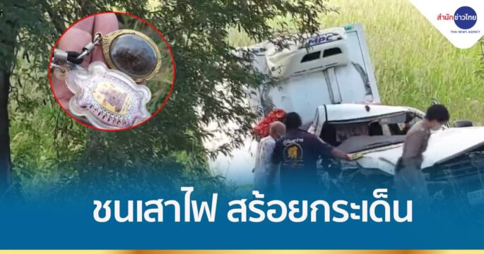 รถกระบะห้องเย็นอัดเสาไฟ เจ็บ 2 สร้อยหลวงพ่อคูณกระเด็น