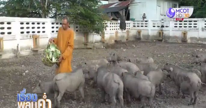 หลวงพ่อใจบุญ เลี้ยงหมูป่าถูกทิ้งกว่า 30 ตัว โดยใช้ข้าวก้นบาตรพระ และเศษผักที่ชาวบ้านนำมาให้ เลี้ยงชีวิตหมูป่าทุกตัว