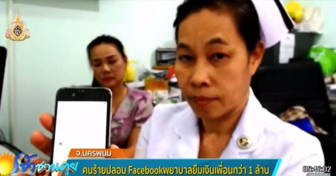 พยาบาลวิชาชีพใน จ.นครพนม ถูกแฮกเฟซบุ๊กและไลน์ หลอกยืมเงินเพื่อน พบผู้เสียหายหลงเชื่อตกเป็นเหยื่อกว่า 38 ราย รวมมูลค่ากว่า 1 ล้านบาท ขณะที่ตนเองก็ถูกมิจฉาชีพแฮกเฟซบุกและไลน์อ้างเป็นหลานสาว หลอกยืมเงินไปได้เช่นกัน ตำรวจเร่งแกะรอยจาก 2 บัญชีรับโอน