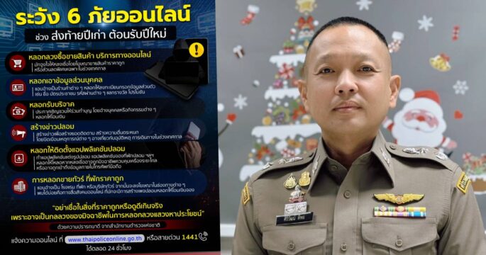 ตำรวจเตือน 6 ภัยออนไลน์ส่งท้ายปี ที่มิจฉาชีพมักฉวยโอกาสในการหลอกหลวงประชาชน โดยขอให้ยึดหลัก “ไม่เชื่อ ไม่รีบ ไม่โอน” เพื่อป้องกันตนเองไม่ให้ตกเป็นเหยื่อ