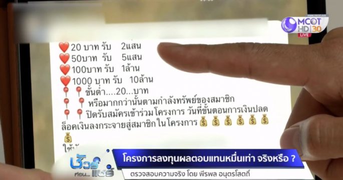บนสังคมออนไลน์แชร์เชิญชวนให้ร่วมลงทุนโปรโมชั่นต่างๆ ซึ่งอ้างว่าให้ผลตอบแทนยอดเยี่ยม เรื่องนี้จริงหรือไม่ ? ติดตามจากศูนย์ชัวร์ก่อนแชร์