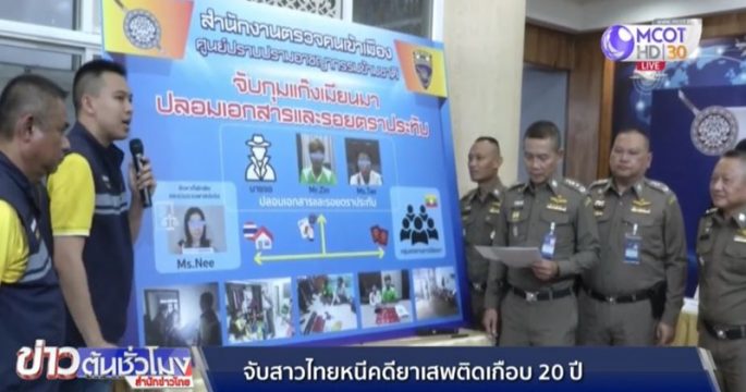 ผบช.สตม. แถลงจับกุมสาวไทย ผู้ต้องหาตามหมายจับศาลอาญาปี 2543 ในความผิดร่วมกันมียาอีไว้เพื่อจำหน่าย