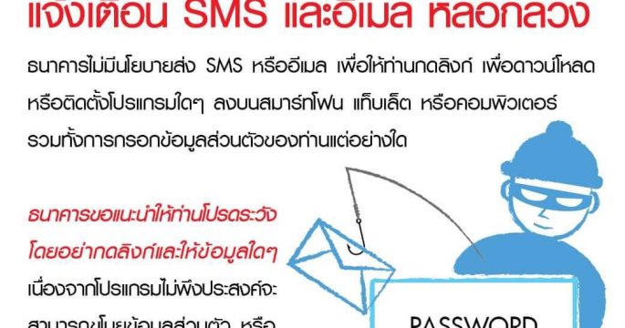 ธนาคารกรุงเทพเตือนระวังเมล์และ SMS หลอกลวงขโมยข้อมูล
