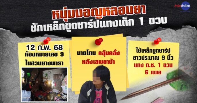 หนุ่มมอญหลอนยา คว้าเหล็กขูดชาร์ปแทงเด็ก 1 ขวบดับ อ้างพ่อเด็กขู่ฆ่า สารภาพเพิ่งเสพก่อนเกิดเหตุ 2 เม็ด