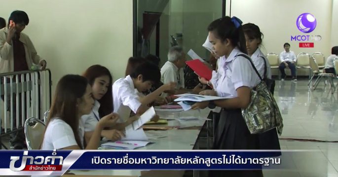 สำนักงานคณะกรรมการการอุดมศึกษาอยู่ระหว่างการดำเนินการกับ 10 มหาวิทยาลัยที่จัดการศึกษาในระดับปริญญาโทและปริญญาเอก ยังไม่ได้มาตรฐาน อีกทั้งนักวิชาการยังชี้ด้วยว่า “คุณภาพการศึกษา” ของไทยแย่ลง