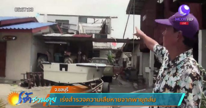 หน่วยงานราชการในอำเภอศรีราชา ตั้งโต๊ะรับเรื่องจากผู้ที่ได้รับเดือดร้อนจากกรณีพายุฤดูร้อนพัดหลังคาและผนังบ้านได้รับความเสียกว่า 100 หลัง ในเขตตำบลบางพระ