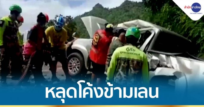 กระบะพาเด็กส่ง รพ.ปทุมฯ เสียหลักหลุดโค้งพลิกคว่ำ ดับ 2 เจ็บ 5