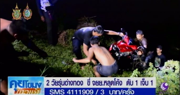 2 วัยรุ่นอ่างทาง ขี่ จยย.หลุดโค้งตกคลองชลประทาน ต.ห้วยคันแหลน อ.วิเศษชัยชาญ ดับ 1 เจ็บ 1