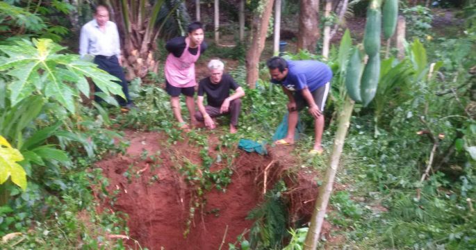 ฝนตกหนักต่อเนื่อง ทำให้ถนนในหมู่บ้านกระทูนใหม่ จ.กระบี่ เกิดหลุมยุบตัวกว้างกว่า 3 เมตร ลึกกว่า 3 เมตร