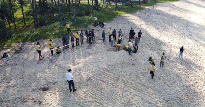 ชุมชนชายฝั่งแม่รำพึงช่วยกันทำคอกล้อมหลุมไข่เต่าหาดบ้านอ่าวเทียน ป้องกันรบกวนการฟักตัว หลังพบแม่เต่าตนุขึ้นวางไข่เกือบ 100 ฟอง นับเป็นครั้งแรกในรอบ 50 ปี และเป็นผลจากการช่วยกันอนุรักษ์สิ่งแวดล้อม