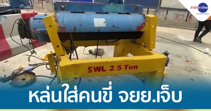 ชิ้นส่วนเครนก่อสร้างรถไฟฟ้าสายสีส้ม หล่นใส่คนขี่รถจักรยานยนต์ได้รับบาดเจ็บ