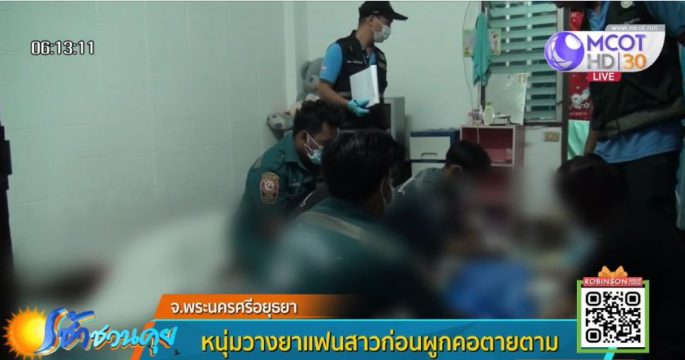 หนุ่มวัย 48 ปี วางยาแฟนสาวเสียชีวิต ก่อนผูกคอตายตาม ในหอพักที่ จ.พระนครศรีอยุธยา ทิ้งจดหมายขอโทษ คิดว่าฝ่ายหญิงมีชายอื่น ขอตายดีกว่าอยู่