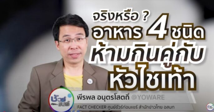 บทความนี้เรียบเรียงโดยเทคโนโลยีปัญญาประดิษฐ์ (Artificial Intelligence : AI) โดยมีเนื้อหาหลักจากคลิปวิดีโอ 26 มิถุนายน 2568 – บนสื่อสังคมออนไลน์มีการแชร์เตือนอาหาร 4 ชนิด ไม่ควรกินคู่กับหัวไชเท้า เพราะอาจส่งผลเสียต่อสุขภาพได้ เช่น ผลไม้ที่มีซีเลเนียม โสมคน แคร์รอต และเห็ดหูหนู 🎯 ตรวจสอบข้อเท็จจริงและคำแนะนำจากผู้เชี่ยวชาญ อาจารย์ แพทย์จีน ดร.เสาวลักษณ์ มีศิลป์ คณะการแพทย์แผนจีน มหาวิทยาลัยหัวเฉียวเฉลิมพระเกียรติ ความจริงหรือความเชื่อ ? ไขข้อสงสัยเรื่องอาหาร 4 ชนิดที่ห้ามกินกับหัวไชเท้า คุณเคยได้ยินความเชื่อที่ว่า “หัวไชเท้าห้ามกินกับอาหารบางชนิด” หรือไม่ ? ข้อมูลเหล่านี้มักจะแพร่หลายในโลกออนไลน์ และอาจทำให้หลายคนกังวลใจ ชัวร์ก่อนแชร์จะพาคุณไปเจาะลึกความจริงจากผู้เชี่ยวชาญ คณะการแพทย์แผนจีน มหาวิทยาลัยหัวเฉียวเฉลิมพระเกียรติ เพื่อไขข้อข้องใจเกี่ยวกับความเชื่อเหล่านี้ ประโยชน์ของ “หัวไชเท้า” หลักการแพทย์แผนจีน ก่อนอื่น มาทำความเข้าใจธรรมชาติของหัวไชเท้ากันก่อน ผู้เชี่ยวชาญยืนยันว่า หัวไชเท้าเป็นอาหารที่ปลอดภัย และไม่ก่อให้เกิดปัญหาสุขภาพร้ายแรงเมื่อกินร่วมกับอาหารที่ถูกกล่าวอ้าง ในทางการแพทย์แผนจีน หัวไชเท้าถูกจัดว่าเป็นทั้งอาหารและยา มีฤทธิ์ “เย็น” และมักใช้สำหรับอาการที่เกี่ยวข้องกับความร้อนในร่างกาย […]