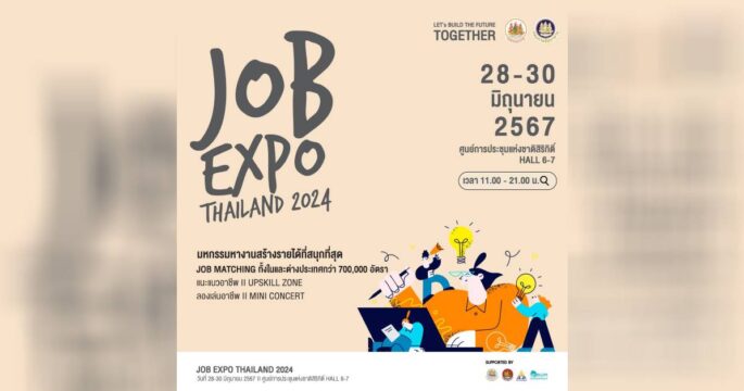 รัฐบาลเชิญชวนร่วมงาน “JOB EXPO THAILAND 2024” มหกรรมหางานสร้างรายได้ ระหว่าง 28-30 มิถุนายนนี้ ณ ศูนย์ประชุมแห่งชาติสิริกิติ์ มีตำแหน่งงานทั้งในและต่างประเทศรองรับผู้สมัครงานหลายแสนอัตรา