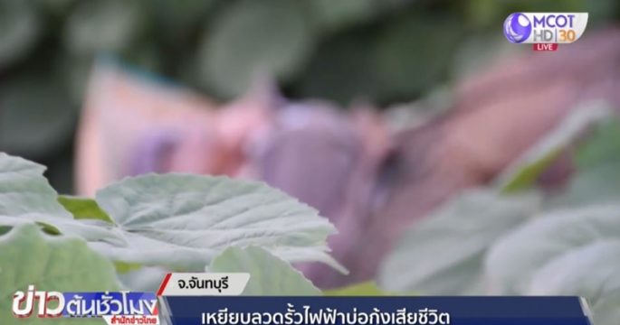 ชาวบ้าน ต.บางกะไชย อ.แหลมสิงห์ จ.จันทบุรี ออกหาปลาประทังชีวิตช่วงไม่มีรายได้ ถูกไฟช็อตเสียชีวิตอยู่ในพงหญ้าริมคลอง ท้ายบ่อกุ้งบริษัทเอกชน คาดเหยียบถูกเส้นลวดที่เจ้าของบ่อกุ้งขึงปล่อยกระแสไฟกันขโมย
