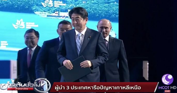 ผู้นำเกาหลีใต้ ญี่ปุ่น และรัสเซีย ร่วมหารือปัญหาเกาหลีเหนือ ในระหว่างการประชุมเศรษฐกิจที่รัสเซีย