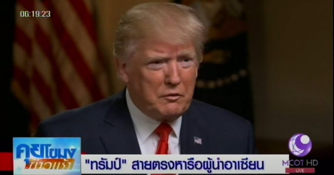 ประธานาธิบดีโดนัลด์ ทรัมป์ ผู้นำสหรัฐ หารือกับ พล.อ.ประยุทธ์ จันทร์โอชา นายกรัฐมนตรีของไทย และนายกรัฐมนตรีลี เซียน ลุง ผู้นำสิงคโปร์ ในวันอาทิตย์ เกี่ยวกับภัยคุกคามจากนิวเคลียร์ของเกาหลีเหนือ