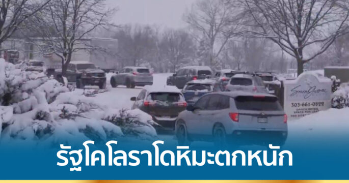 ชาวอเมริกันในรัฐโคโลราโดของสหรัฐ เผชิญสภาพอากาศเย็นจัด หิมะตกหนาถึง 15 ซม. พากันขับรถออกมาต่อแถวยาวเหยียดเพื่อรับเครื่องฮีตเตอร์และน้ำดื่ม