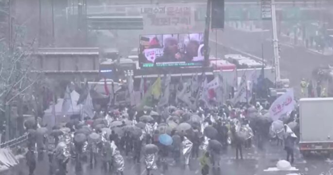 ผู้ชุมนุมฝ่ายสนับสนุนและฝ่ายต่อต้านประธานาธิบดียุน ซ็อกยอล ของเกาหลีใต้ รวมตัวกันในเช้าวันนี้ ท่ามกลางสภาพอากาศหนาวจัด หิมะตกหนัก และพื้นผิวจราจรเปียกชื้นในกรุงโซล