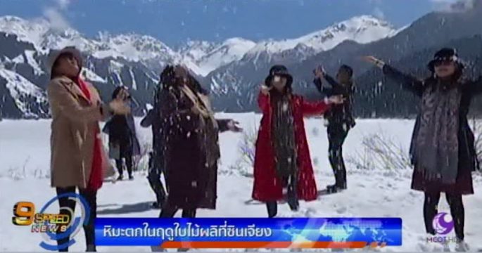 เกิดหิมะตกหนักในฤดูใบไม้ผลิ บนเขตเทือกเขาเทียนฉีสถานที่ท่องเที่ยวเลื่องชื่อ ของเขตปกครองตนเองซินเจียงอุยกูร์ทำให้นักท่องเที่ยวหลายพันคน แห่ขึ้นไปเที่ยวชมความงามที่เหมือนภาพวาด