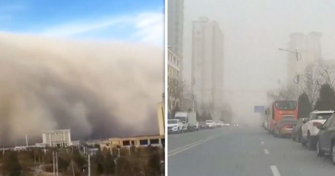 พายุทรายขนาดใหญ่พัดกระหน่ำบริเวณเขตซินเจียงทางตะวันตกเฉียงเหนือของจีนเมื่อค่ำวันศุกร์ ทำให้ทัศนวิสัยลดลงเหลือไม่ถึง 20 เมตร
