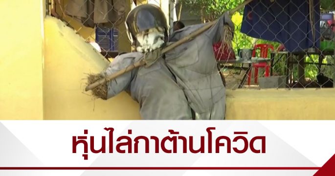 ชาวกัมพูชาหลายหมู่บ้านแถบชนบทห่างไกลแขวนหุ่นไล่กาไว้หน้าบ้าน เพราะเชื่อว่าจะช่วยป้องกันไวรัสโคโรนาสายพันธุ์ใหม่