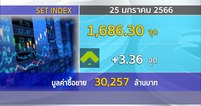 SET ปิดช่วงเช้านี้ที่ 1,686.30 จุด เพิ่มขึ้น 3.36 จุด (+0.20%) มูลค่าการซื้อขายราว 30,257 ล้านบาท
