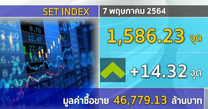 หุ้นไทยวันนี้พุ่งแรง ล่าสุดเคลื่อนไหวที่ 1,567.68 จุด บวก 17.84 จุด มูลค่าการซื้อขาย 36,268.12 ล้านบาท ตามตลาดเอเชียและตลาดหุ้นสหรัฐที่ทำสถิติสูงสุด
