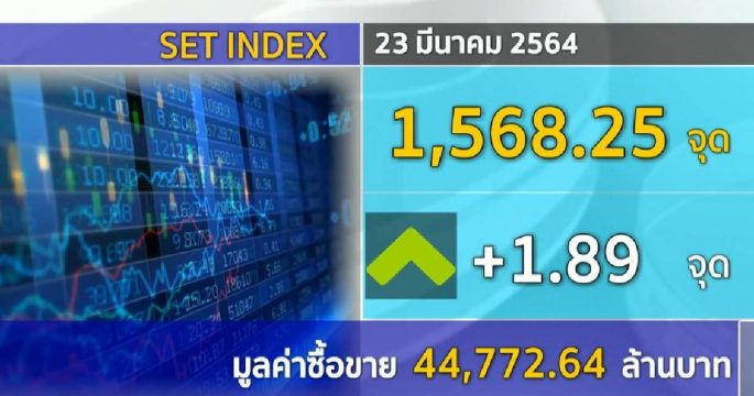 หุ้นไทยวันนี้เปิดตลาดเป็นบวก และล่าสุดเคลื่อนไหว ที่ 1,568.25 จุด บวก 1.89 จุด มูลค่าซื้อขาย 44,772.64 ล้านบาท รับผลบวกทั้งตลาดหุ้นต่างประเทศที่เป็นบวก และข่าวการประชุม ครม.ที่มีการพิจารณามาตรการกระตุ้นเศรษฐกิจ