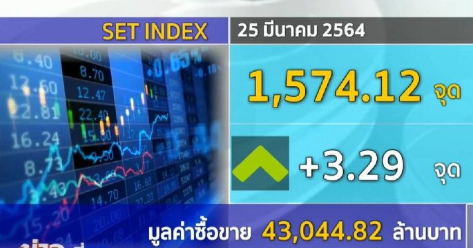 ตลาดหุ้นไทยภาคเช้า เปิดการซื้อขายวันนี้ เพิ่มขึ้น 5.30 จุด ดัชนีช่วงเที่ยงอยู่ที่ 1,574.12 จุด บวก 3.29 จุด มูลค่าซื้อขาย 43,044.82 ล้านบาท