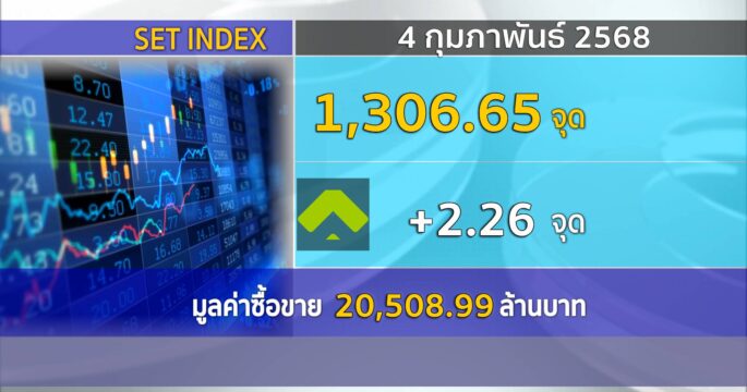 ตลาดหลักทรัพย์ฯ ปิดช่วงเช้าวันนี้ 1,306.65 จุด เพิ่มขึ้น 2.26 จุด (+0.17%) มูลค่าซื้อขาย 20,508.99 ล้านบาท