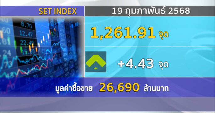 ตลาดหลักทรัพย์ฯ ปิดช่วงเช้าวันนี้ 1,261.91 จุด เพิ่มขึ้น 4.43 จุด (+0.35%) มูลค่าซื้อขายราว 26,690 ล้านบาท