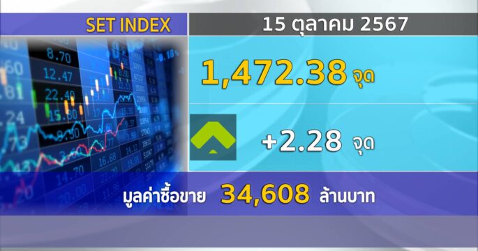 ตลาดหลักทรัพย์ฯ ปิดภาคเช้า 1,472.38 จุด เพิ่มขึ้น 2.28 จุด (+0.16%) มูลค่าซื้อขายราว 34,608 ล้านบาท