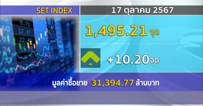 ตลาดหลักทรัพย์ฯ ปิดภาคเช้า 1,495.21 จุด เพิ่มขึ้น 10.20 จุด (+0.69%) มูลค่าซื้อขายราว 31,394.77 ล้านบาท