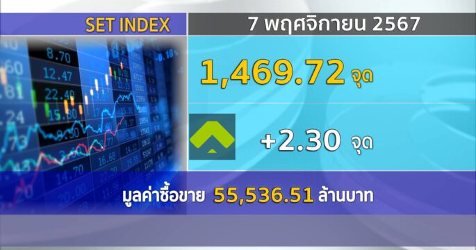SET ปิดวันนี้ที่ 1,469.72 จุด เพิ่มขึ้น 2.30 จุด (+0.16%) มูลค่าซื้อขายราว 55,536.51 ล้านบาท