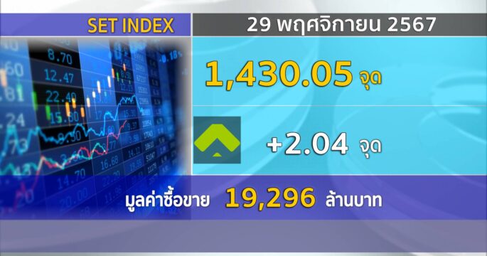 ตลาดหลักทรัพย์ฯ ปิดภาคเช้าที่ 1,430.05 จุด เพิ่มขึ้น 2.04 จุด (+0.14%) มูลค่าซื้อขายราว 19,296 ล้านบาท