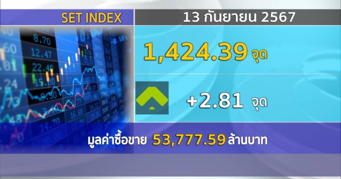 SET ปิดวันนี้ที่ 1,424.39 จุด เพิ่มขึ้น 2.81 จุด (+0.20%) มูลค่าการซื้อขาย 53,777.59 ล้านบาท
