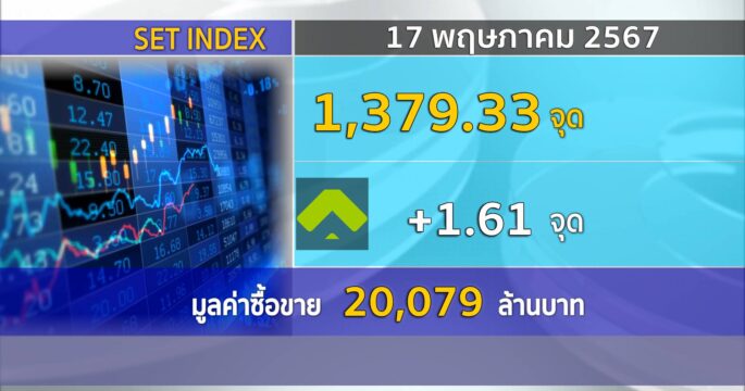 ตลาดหลักทรัพย์ฯ ปิดช่วงเช้าวันนี้ 1,379.33 จุด เพิ่มขึ้น 1.61 จุด (+0.12%) มูลค่าซื้อขายราว 20,079 ล้านบาท