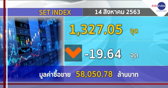 ตลาดหลักทรัพย์ ปิดวันนี้ที่ระดับ 1,327.05 จุด ลดลง 19.64 จุด (-1.46%) มูลค่าการซื้อขาย 58,050.78 ล้านบาท การซื้อขายหุ้นวันนี้ ดัชนีหุ้นไทยเคลื่อนไหวในแดนลบเป็นส่วนใหญ่ ลดความเสี่ยงหลังหลายปัจจัยไม่แน่นอน
